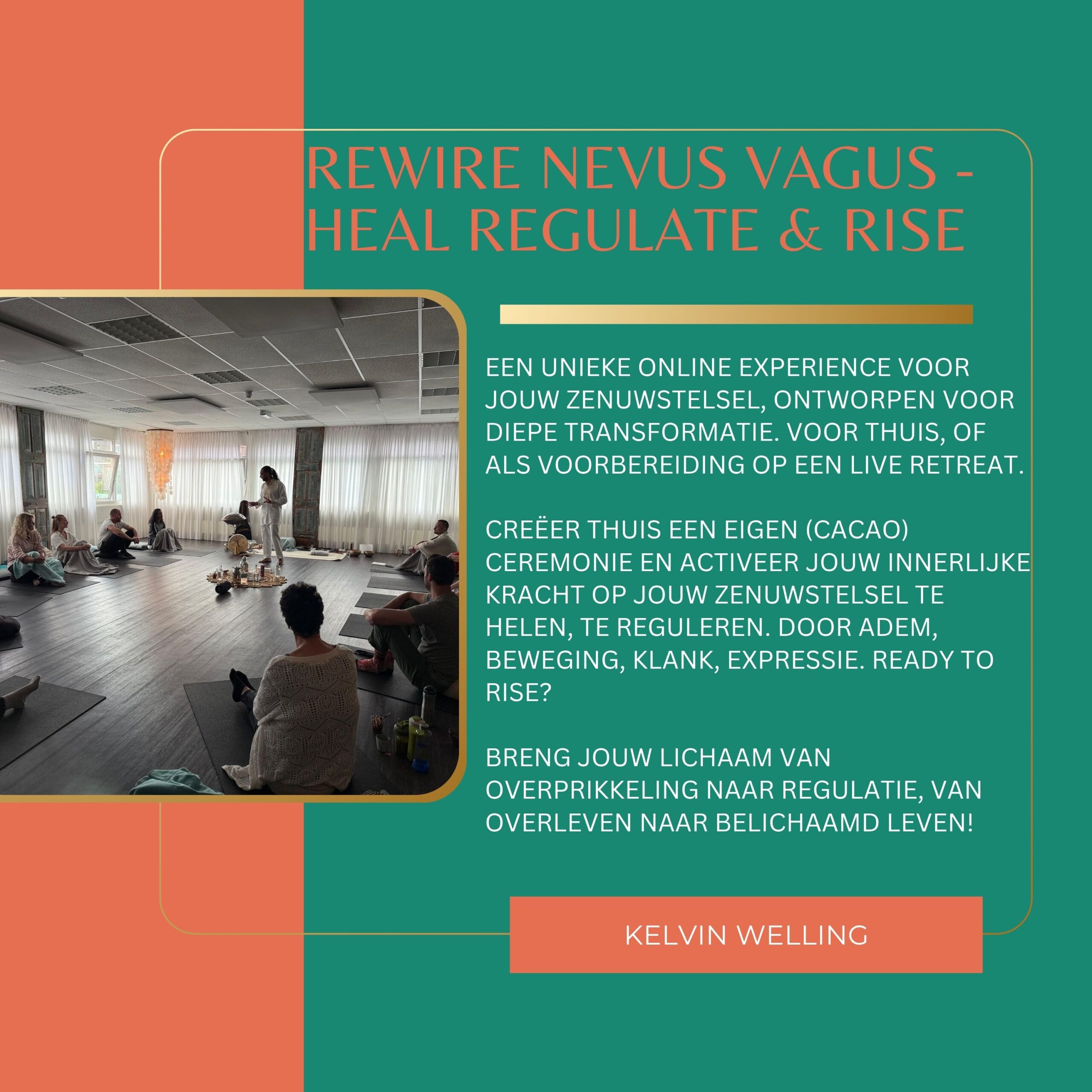 €147(incl. BTW)0( 0 reviews )2REWIRE – Heal Regulate & Rise Een unieke online experience voor jouw zenuwstelsel, ontworpen voor diepe transformatie. Voor thuis, of als voorbereiding op een live retreat. Creëer thuis een eigen (cacao)ceremonie en activeer jouw innerlijke kracht op jouw zenuwstelsel te helen, te reguleren. Door adem, beweging, klank, expressie. Ready to Rise? Breng jouw lichaam van overprikkeling naar regulatie, van overleven naar belichaamd leven!
