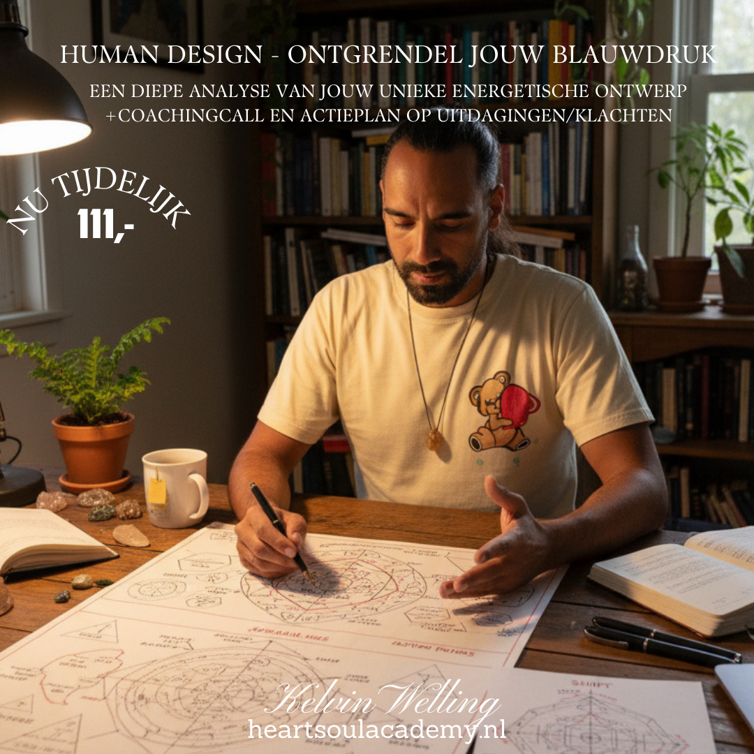 €197(incl. BTW)0( 0 reviews )0Human Design Analyse –> Ontgrendel jouw blauwdruk (111,-) Een diepe, persoonlijke analyse van jouw unieke energetische ontwerp. Geen standaard rapport. Geen oppervlakkige woorden en inzichten. Maar een intense decodering van je uitdagingen, patronen, gezondheid, relaties, missie en onbewuste blokkades. Met 1:1 check-in call, directe helingstools én een gepersonaliseerd actieplan dat je leven en werk meteen verandert. Voor leiders en professionals die klaar zijn om te stoppen met overleven en te gaan leven vanuit hun ware zelf.